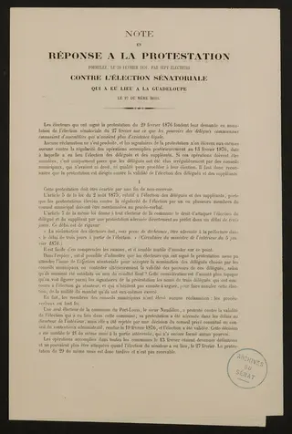 Voir le fil d’Ariane Archives du Sénat Consulter en ligne Guadeloupe Accéder à l'ensemble des dossiers d'élections sénatoriales durant la IIIe République pour ce département. 66S 067 187618851894190019031912_11912_2192119291938 Partager cette page Partager sur X Partager sur Facebook Partager sur Linkedin Partager par courriel