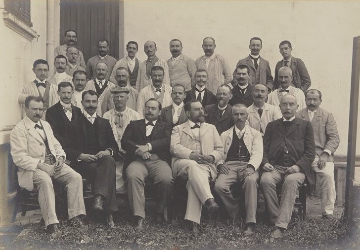 Jean Amic (en costume blanc, au 1er rang, au centre) - © gallica.bnf.fr / Bibliothèque nationale de France