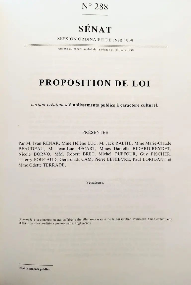 Le Sénat, de chambre de réflexion, a su conduire ce projet à son terme, en impliquant tous les acteurs concernés grâce à une large concertation. La loi n° 2002-6 du 4 janvier 2002 relative à la création d'établissements publics de coopération culturelle et la loi n° 2006-723 du 22 juin 2006 modifiant le code général des collectivités territoriales fournissent l’exemple d’un travail législatif mené sur un horizon à long terme, à partir du dépôt d’une proposition de loi sénatoriale.